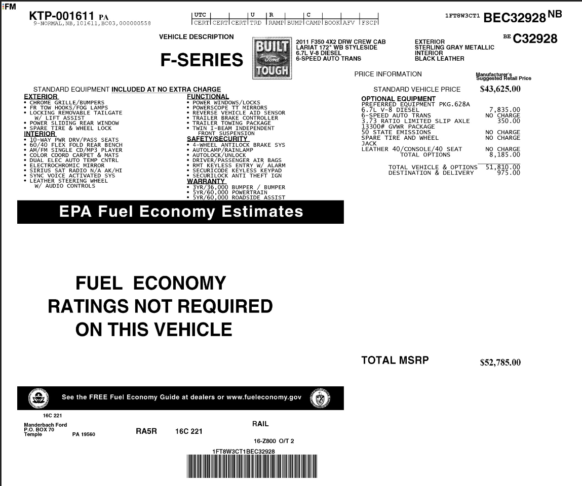 LARIAT 4X2 CREWCAB 6.7L POWER STROKE DIESEL 1OWNER