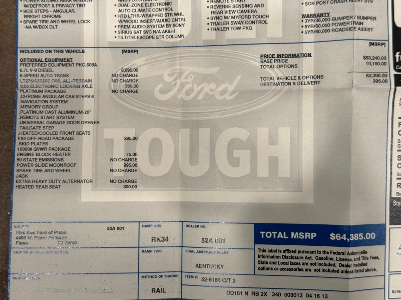 2013 Ford Super Duty F-250 SRW PLATINUM 4X4 CREWCAB SHORT WB 6.7L V8 DIESEL FX4
