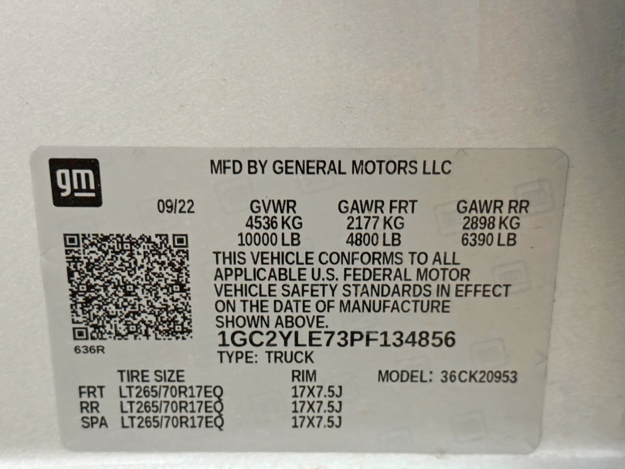 VIN: 1GC2YLE73PF134856