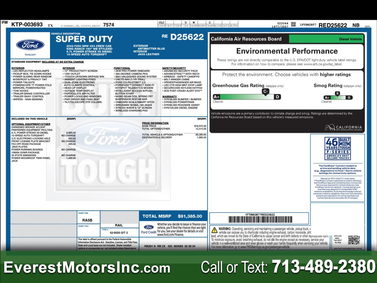 2024 Ford Super Duty F-250 SRW KINGRANCH 4X4 CREWCAB SHORTB 6.7 DIESEL 1OWNER FX4
