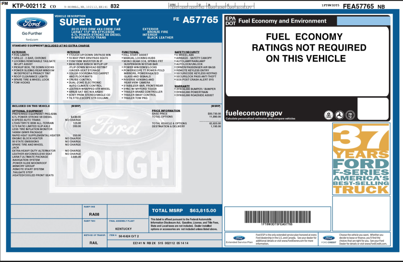 VIN: 1FT8W3DT5FEA57765